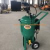 DB225 dustless blasting machine holds up to 10 gallons of water and 100 lbs of abrasive which allows up to 30 minutes of continuous blasting time.